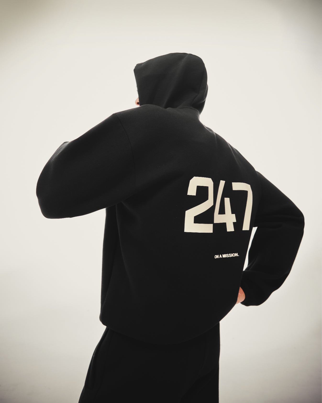 - 247 Numbers branding to chest and hood, On A Mission lock-up to centre back