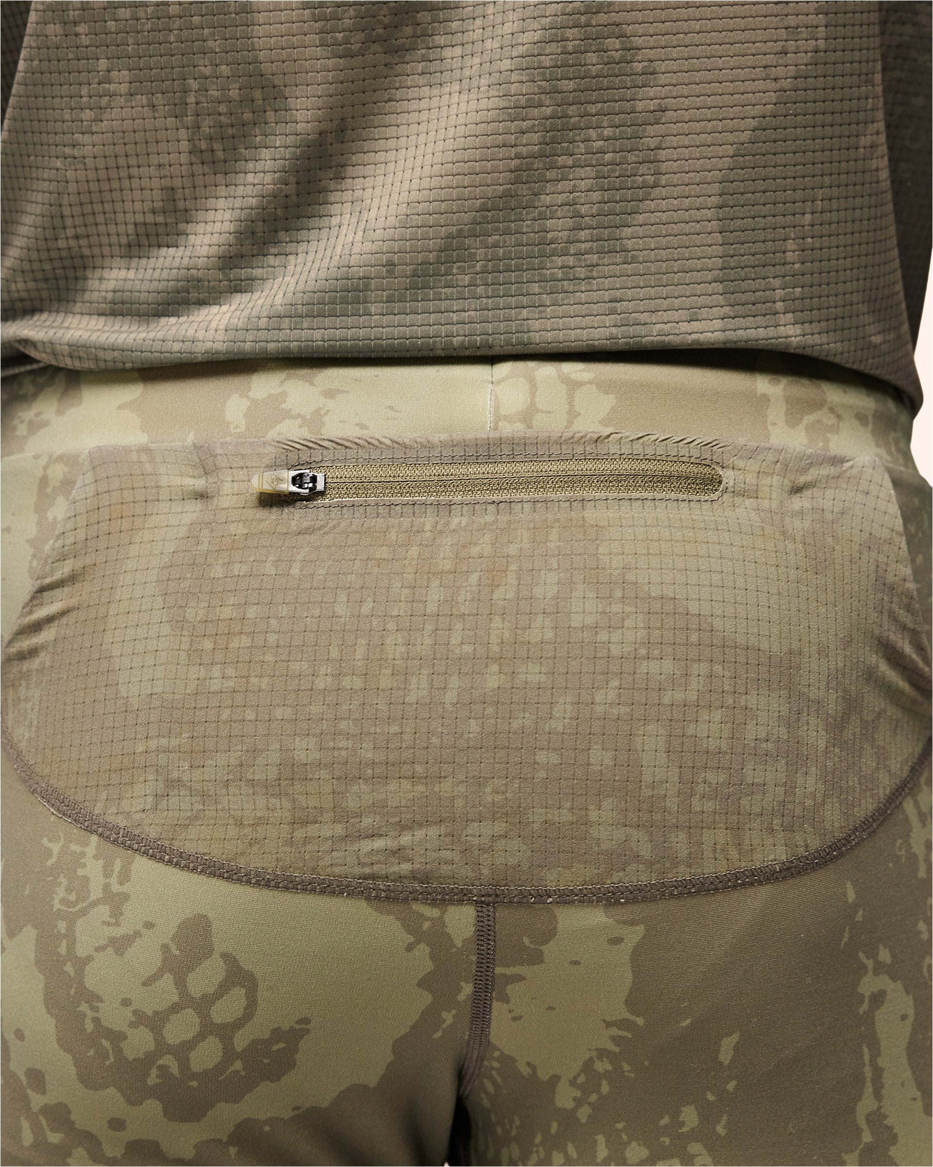 - Ripstop panelled pockets, grid-texture detailing at the hip