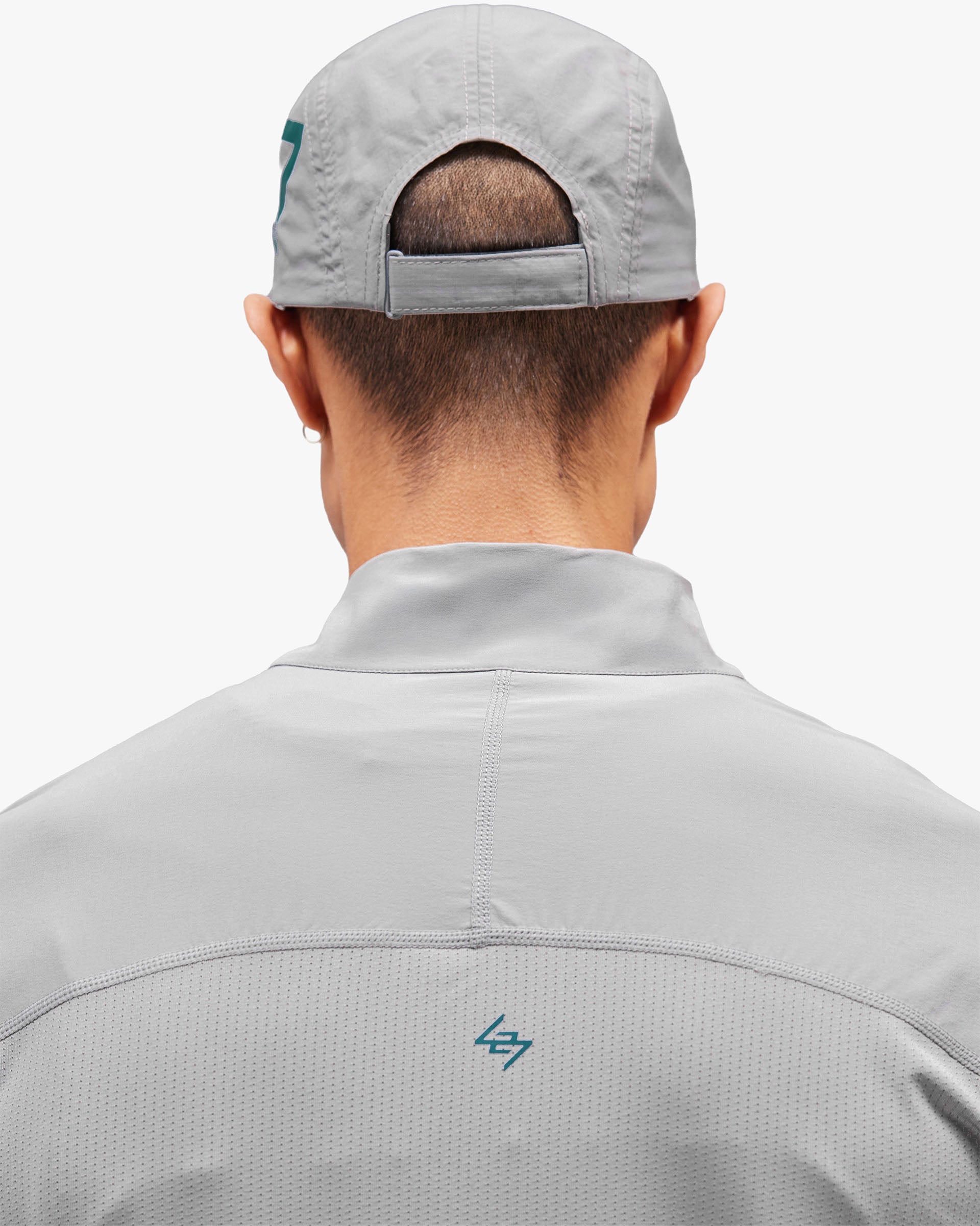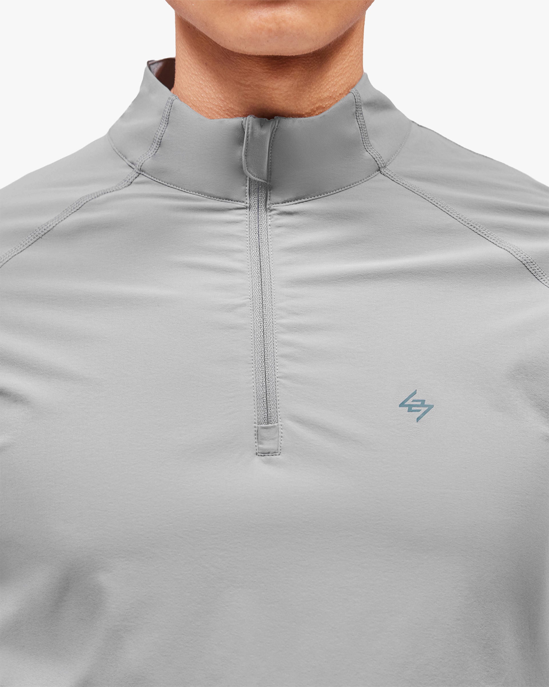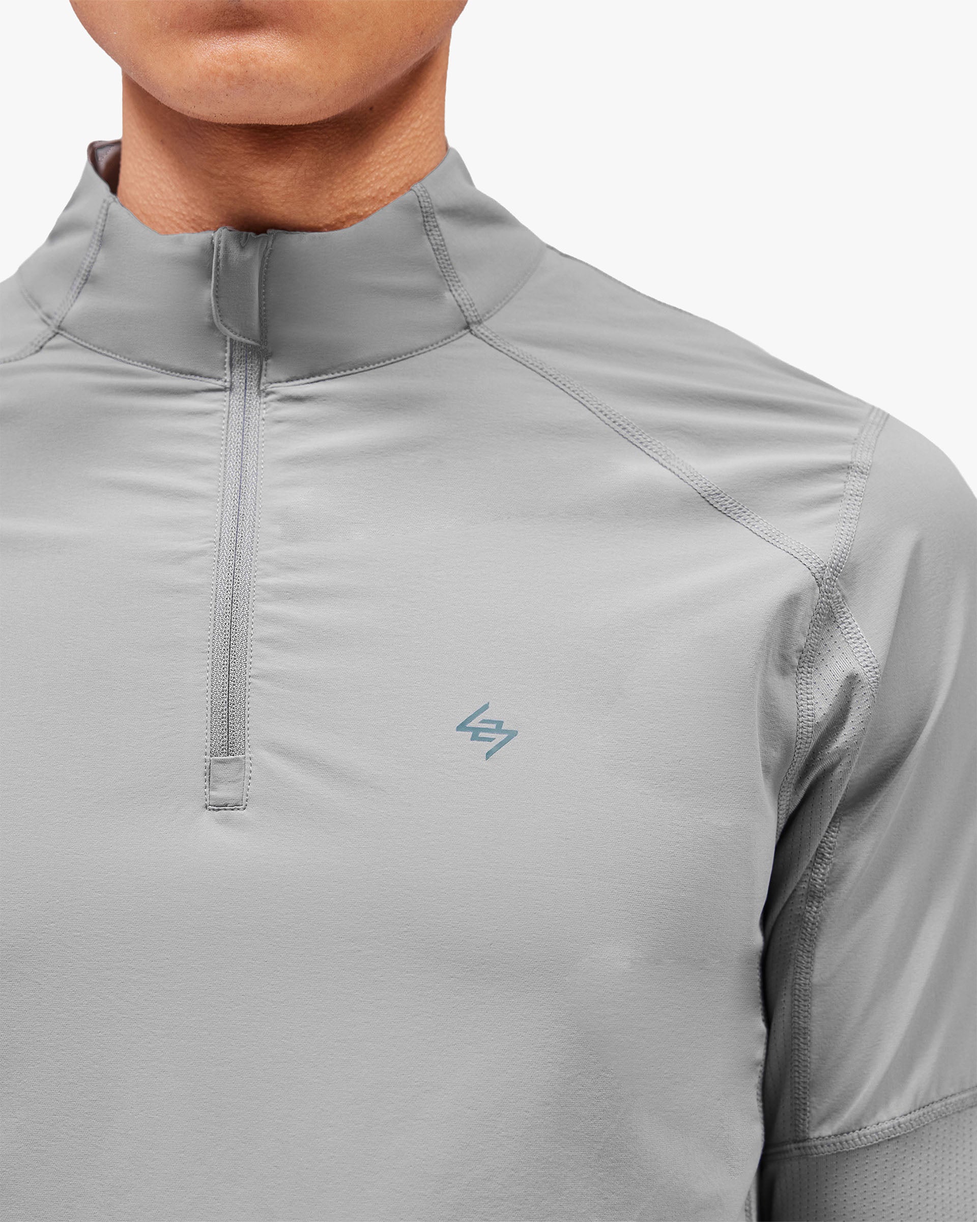 Introducing the 247 Numbers Run Quarter Zip in Graphite Grey. Engineered for hybrid training, built for athletes who train without compromise. Cut from a lightweight nylon blend with mesh panel detailing to the elbows and underarms for zoned breathability and airflow where it matters most. Finished with a quarter zip opening with branded 247 zip heads, a watch finder to both sleeves, thumb hole detailing to the sleeve ends for a secure layered fit and part of the 247 layering system. Slim fit.