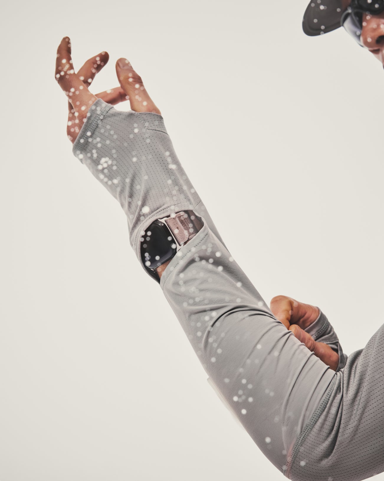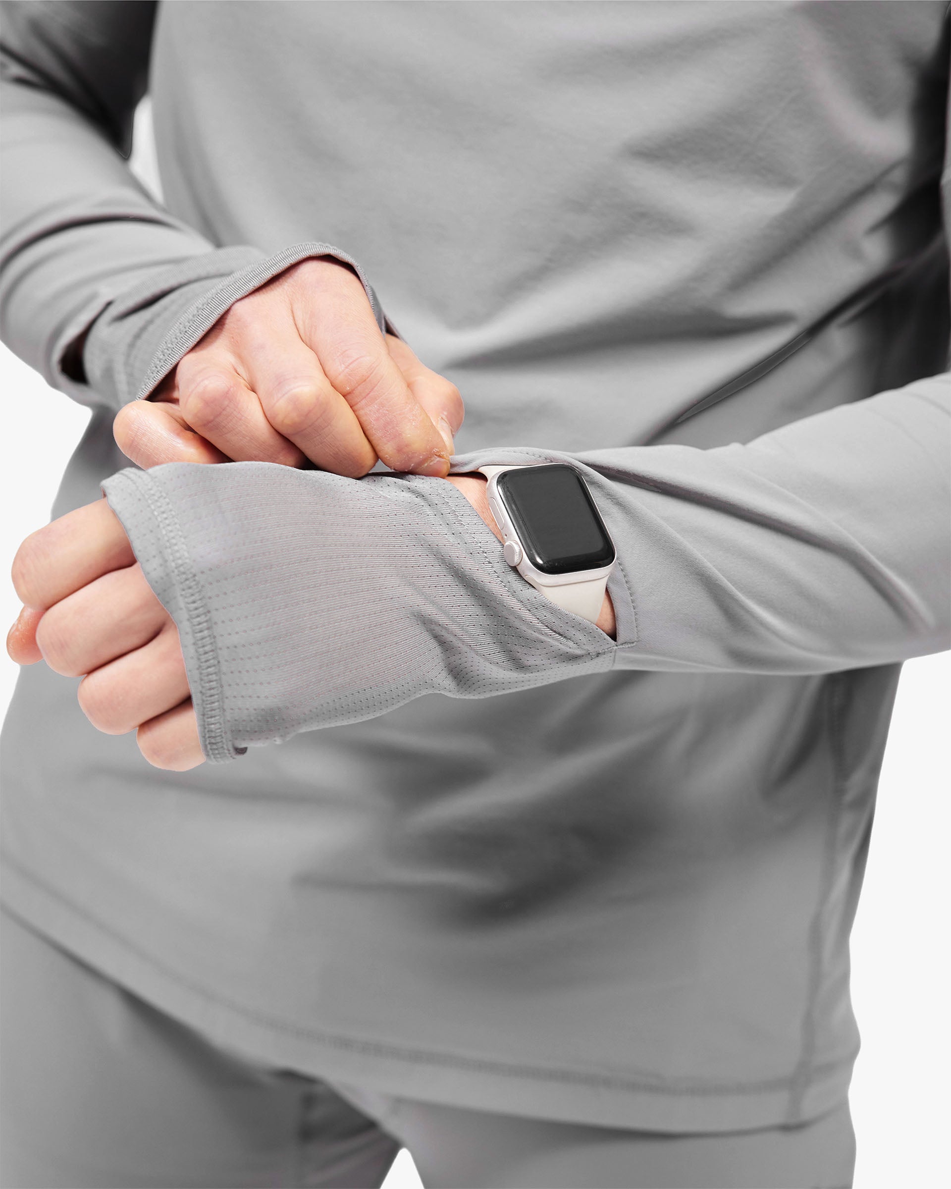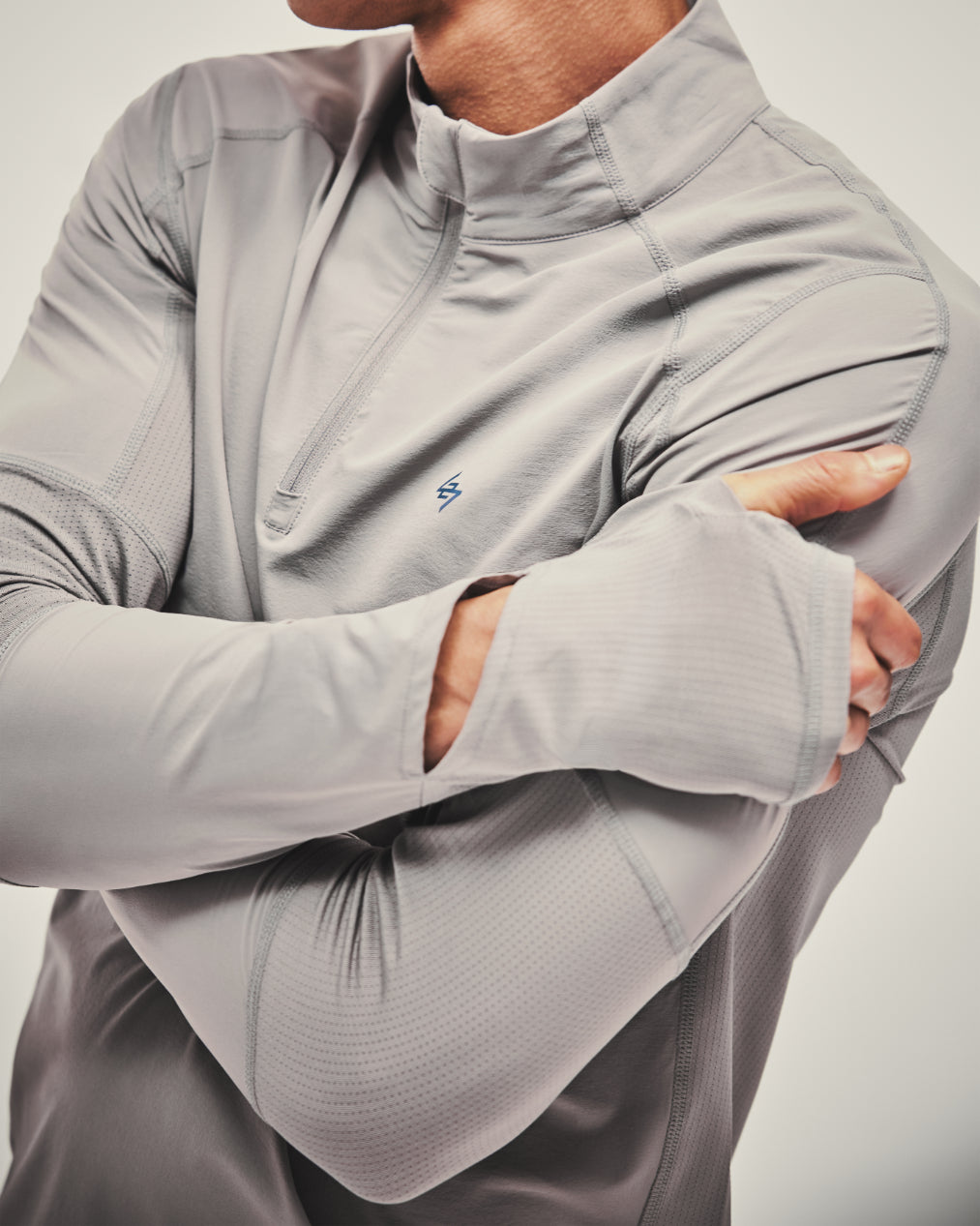Introducing the 247 Numbers Run Quarter Zip in Graphite Grey. Engineered for hybrid training, built for athletes who train without compromise. Cut from a lightweight nylon blend with mesh panel detailing to the elbows and underarms for zoned breathability and airflow where it matters most. Finished with a quarter zip opening with branded 247 zip heads, a watch finder to both sleeves, thumb hole detailing to the sleeve ends for a secure layered fit and part of the 247 layering system. Slim fit.