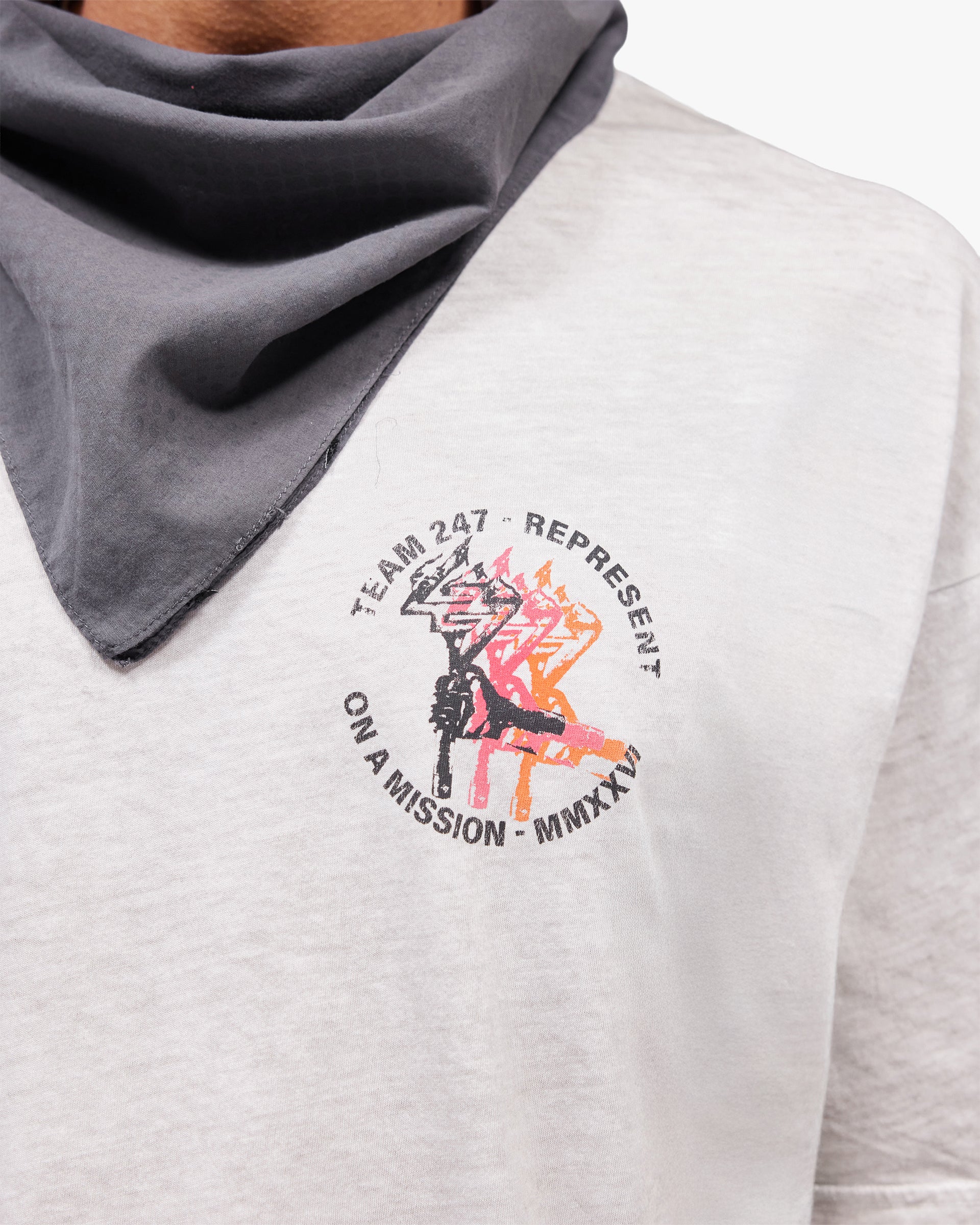 Introducing the 247 Torch Crop Tee in Bleach Wash. Cut in a boxy cropped fit from cotton slub fabric with a distressed bleach wash finish, the Torch collection references vintage athletics with a modern edge. The torch graphic pays homage to a golden era of American track and field, reimagined for the modern athlete.