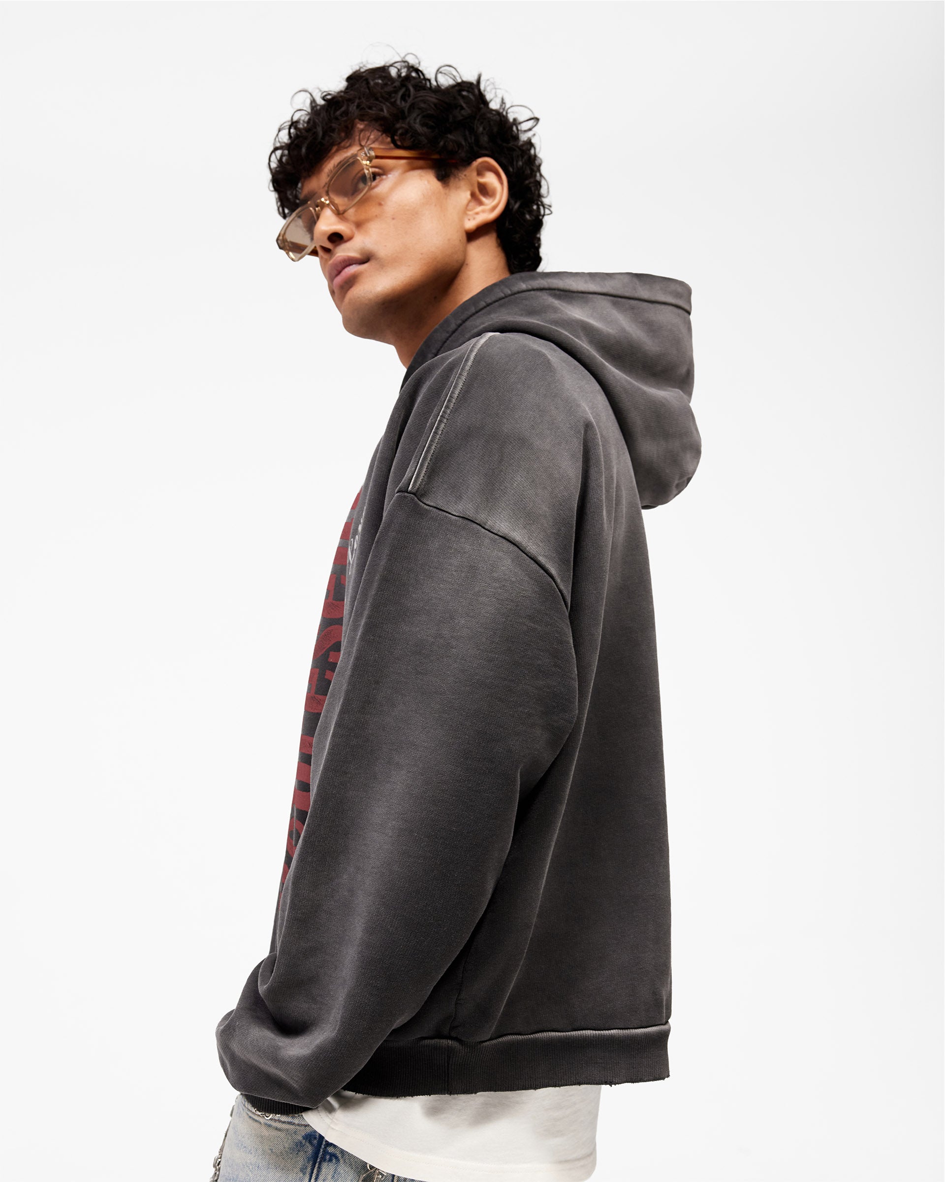 Introducing the Loaded With Love Hoodie in Stained Black, a boxy essential built for longevity and understated presence. Crafted from substantial 485GSM cotton, this hoodie arrives with signature Represent detailing: a metal bar sits at the hem, a front graphic marks the chest, and minimal distressing softens the cuff and hem. The marriage of comfort and considered design makes this a foundational piece for the season.