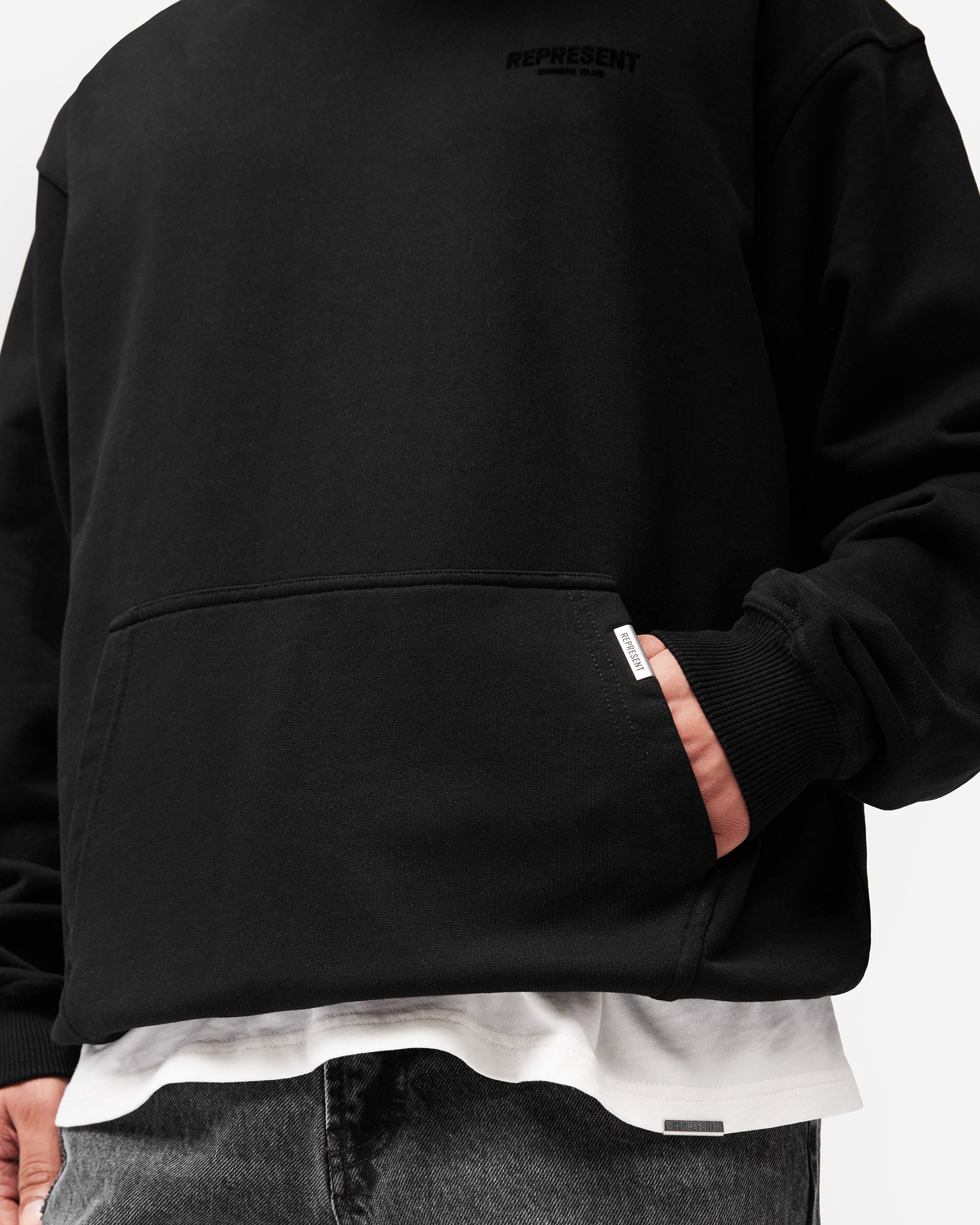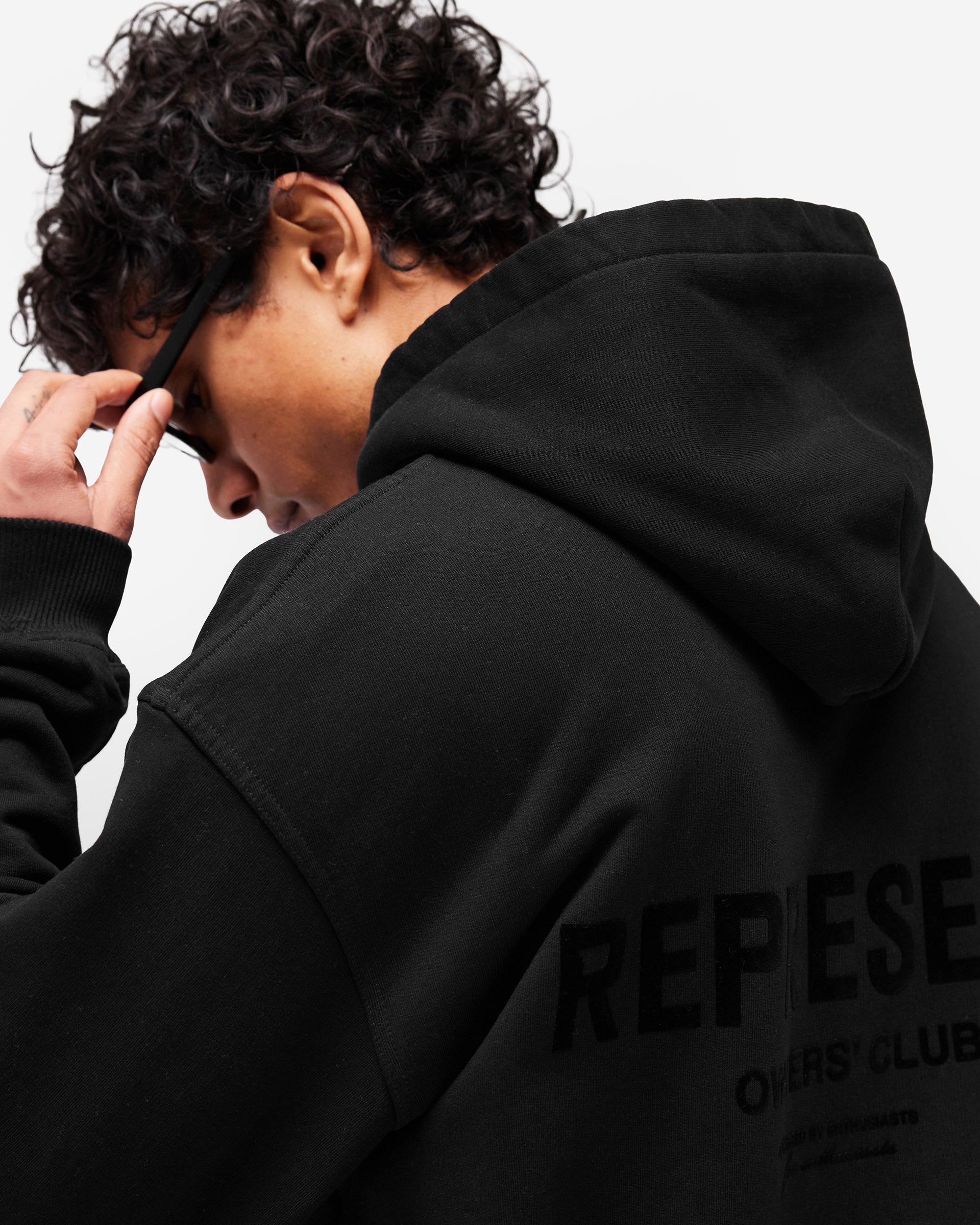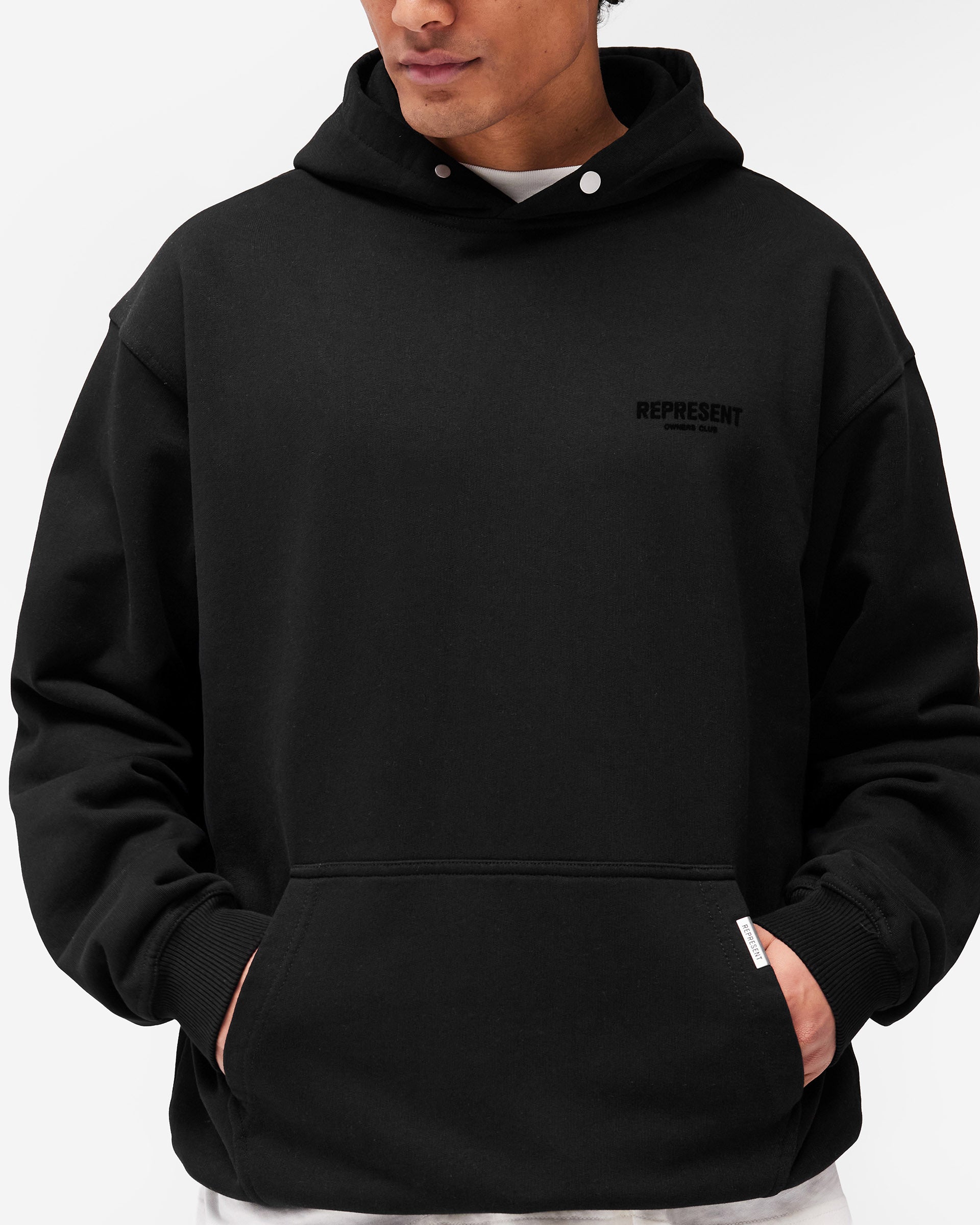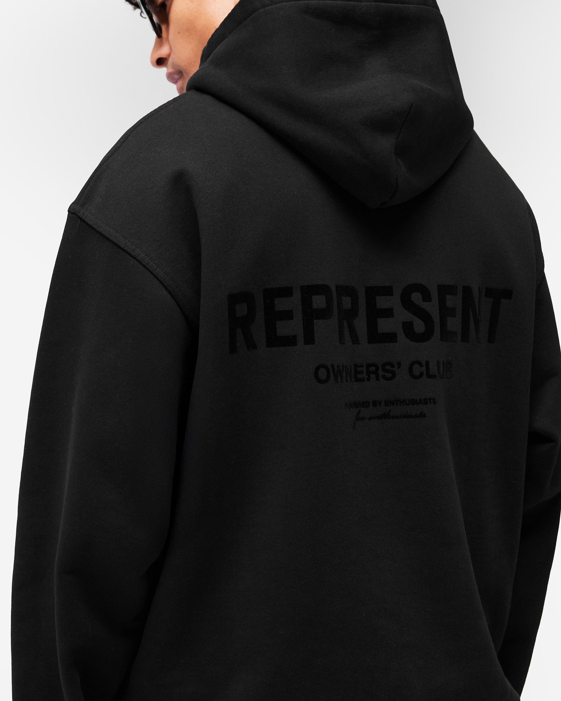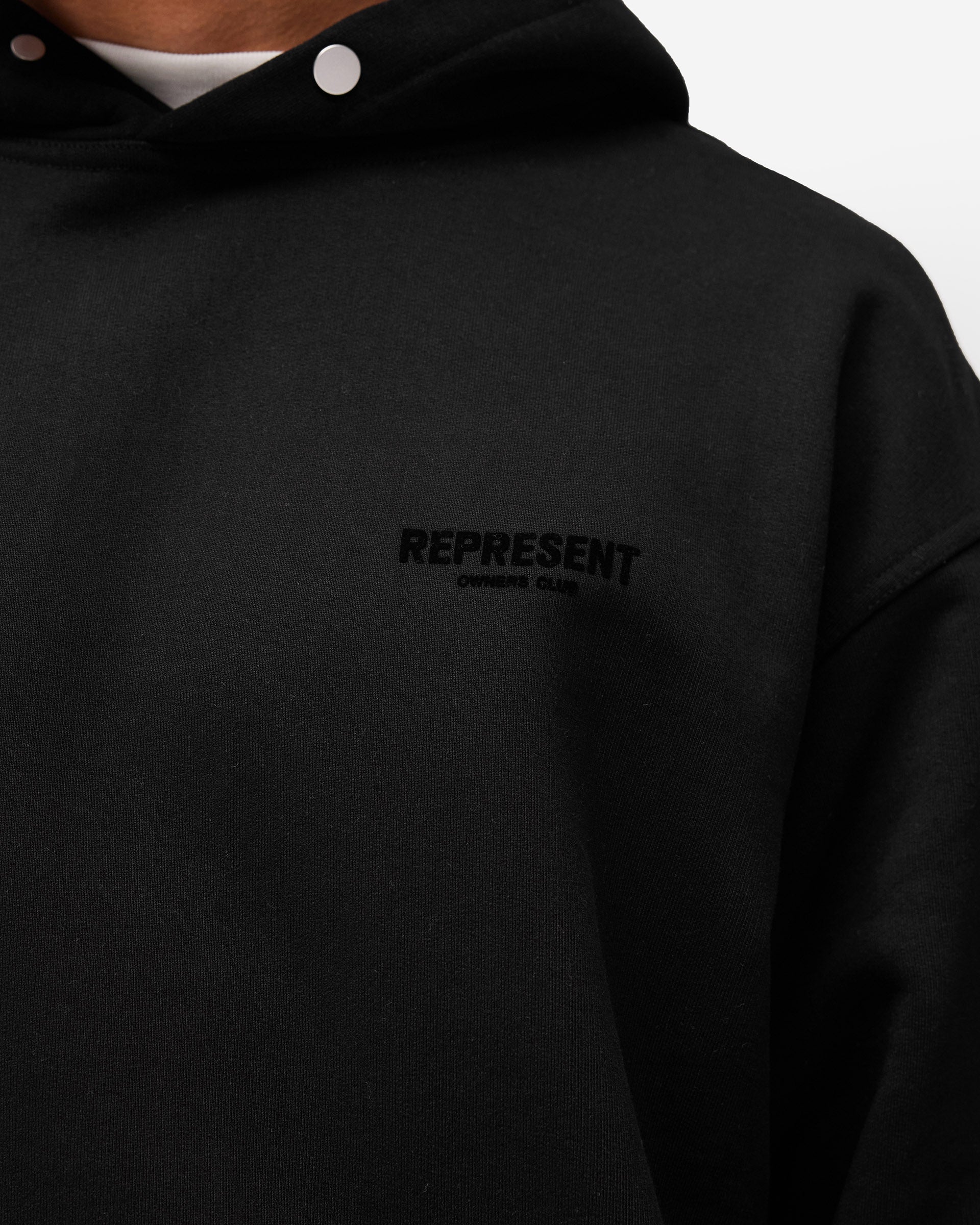 Introducing the Represent Owners Club Flocked Hoodie. Our most recognised piece, born in Manchester and worn worldwide. Cut from 480gsm heavyweight loopback cotton, piece dyed for depth of colour and pre-shrunk for a lived-in feel from the first wear. Flocked Owners Club branding with a soft hand feel sits to the chest and back, finished with a Cobrax popper hood, ribbed trims, metal bar logo and our signature oversized fit that falls wide and square. Made in Portugal.