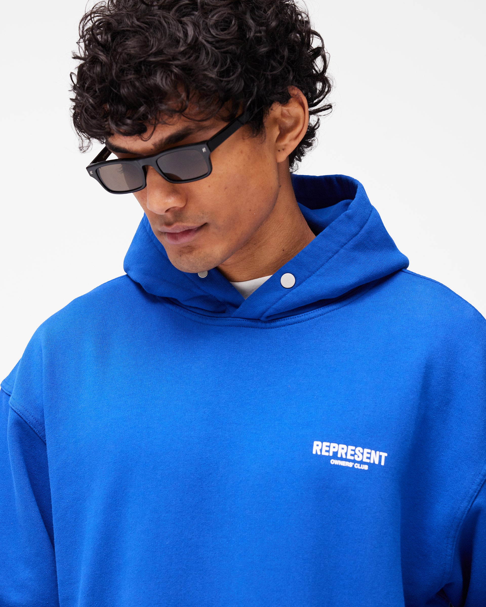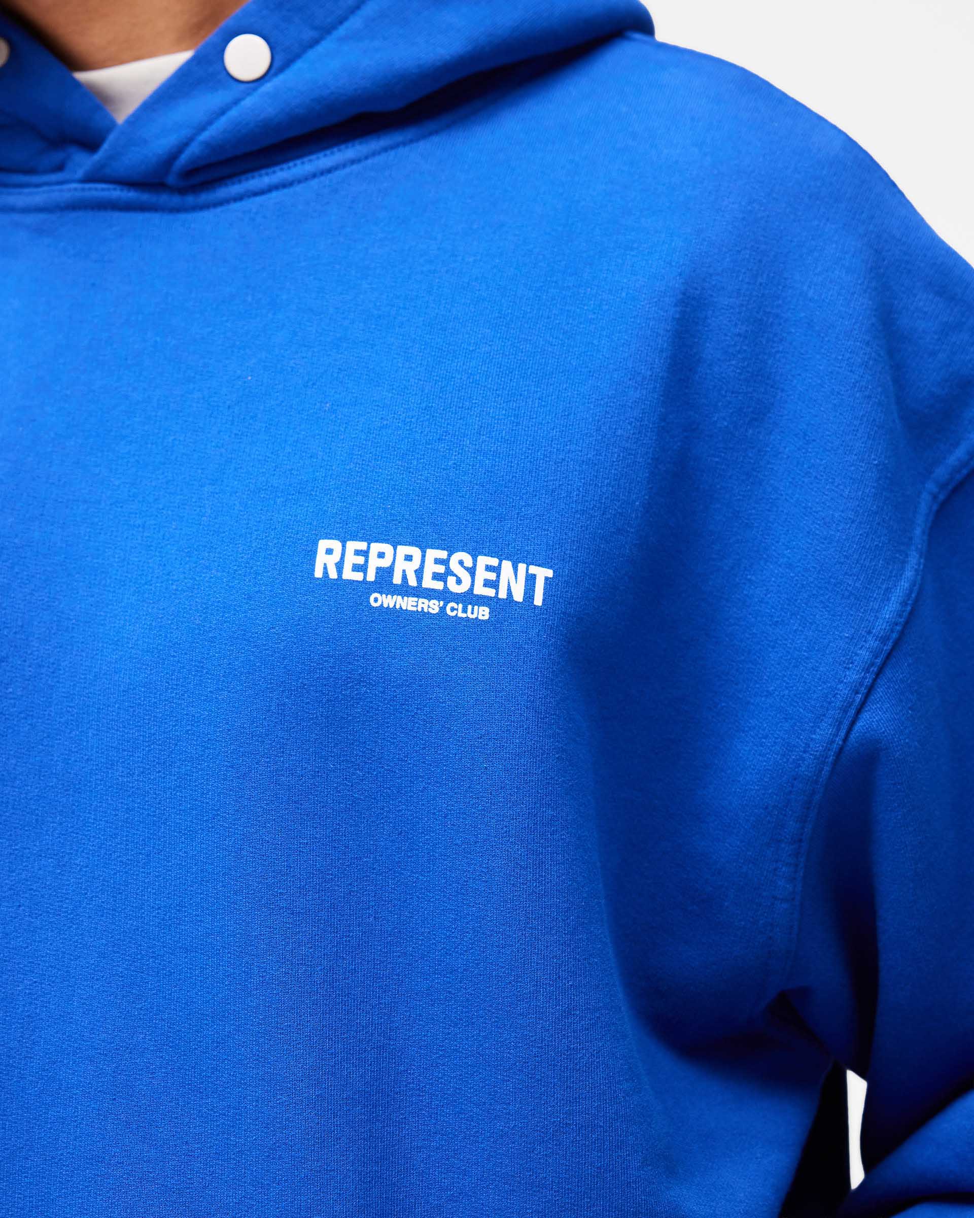 Introducing the Represent Owners Club Hoodie in Cobalt. Our most recognised piece, born in Manchester and worn worldwide. Cut from 480gsm heavyweight loopback cotton, piece dyed for depth of colour and pre-shrunk for a lived-in feel from the first wear. Owners Club branding sits to the chest and back, finished with a Cobrax popper hood, ribbed trims and our signature oversized fit that falls wide and square. Made in Portugal.