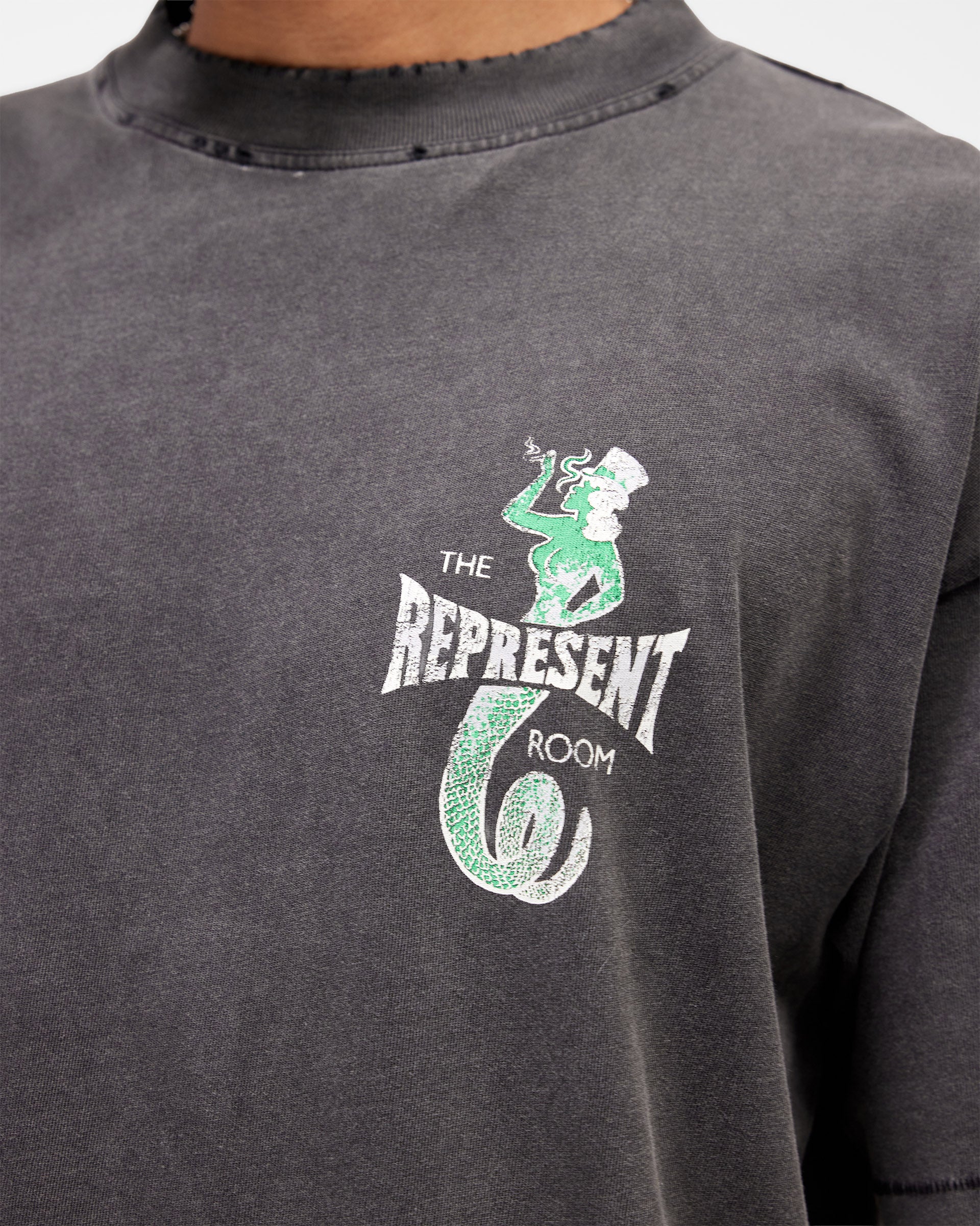 Introducing the Viper Room Dice T-Shirt in Vintage Grey, a piece rooted in the raw heritage of one of Sunset Strip's most legendary venues. Represent x Viper Room celebrates the iconic nightclub opened by Johnny Depp in 1993, a space that defined dark, intimate nightlife culture. This oversized tee channels that storied aesthetic with signature construction touches and an unexpected edge.