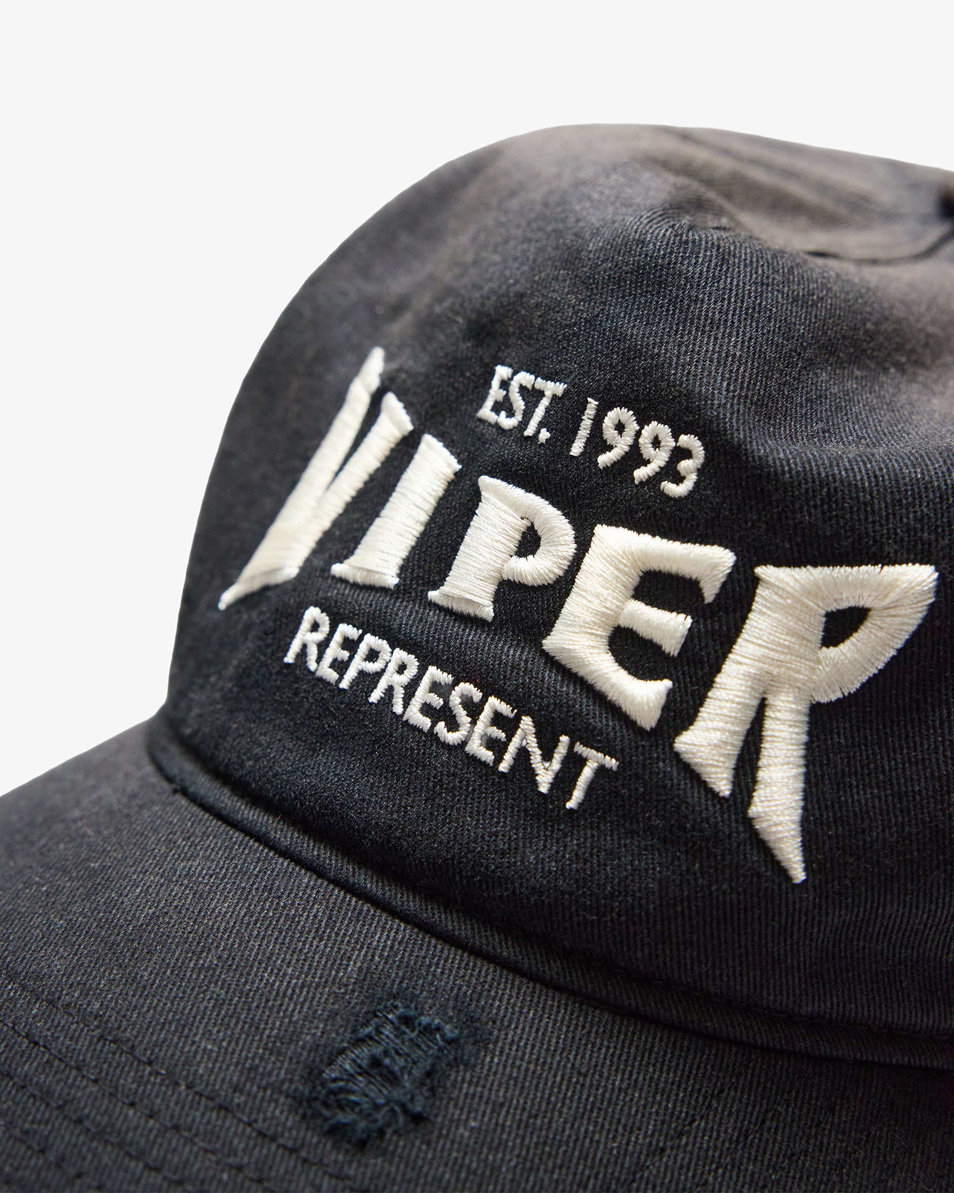 Introducing the Viper Room Cap in Washed Black, a collaborative 5 panel cap from Represent and The Viper Room, one of the Sunset Strip's most iconic venues. Crafted from cotton twill with slight distressing and coastal wash, it features raised embroidery for authentic rock and roll heritage.