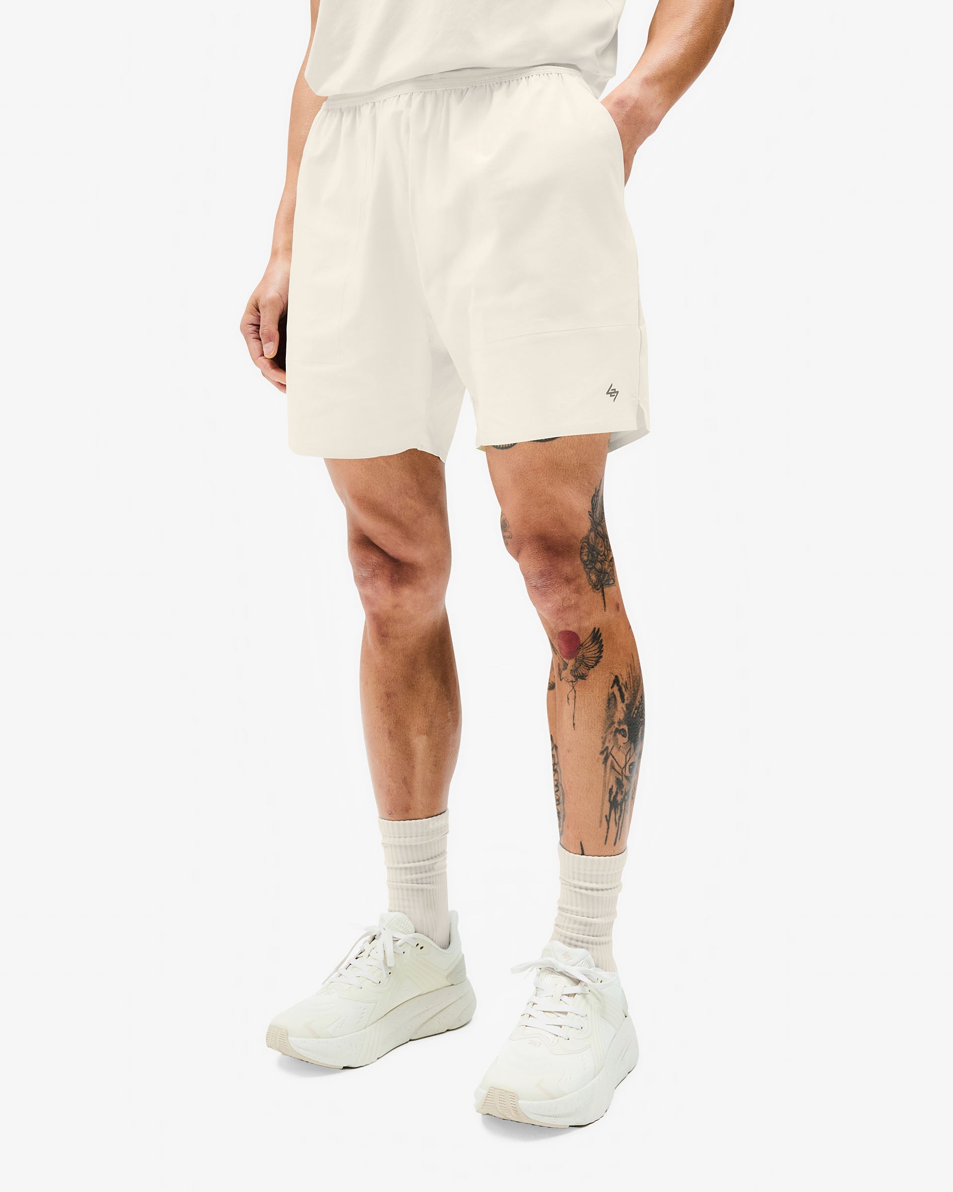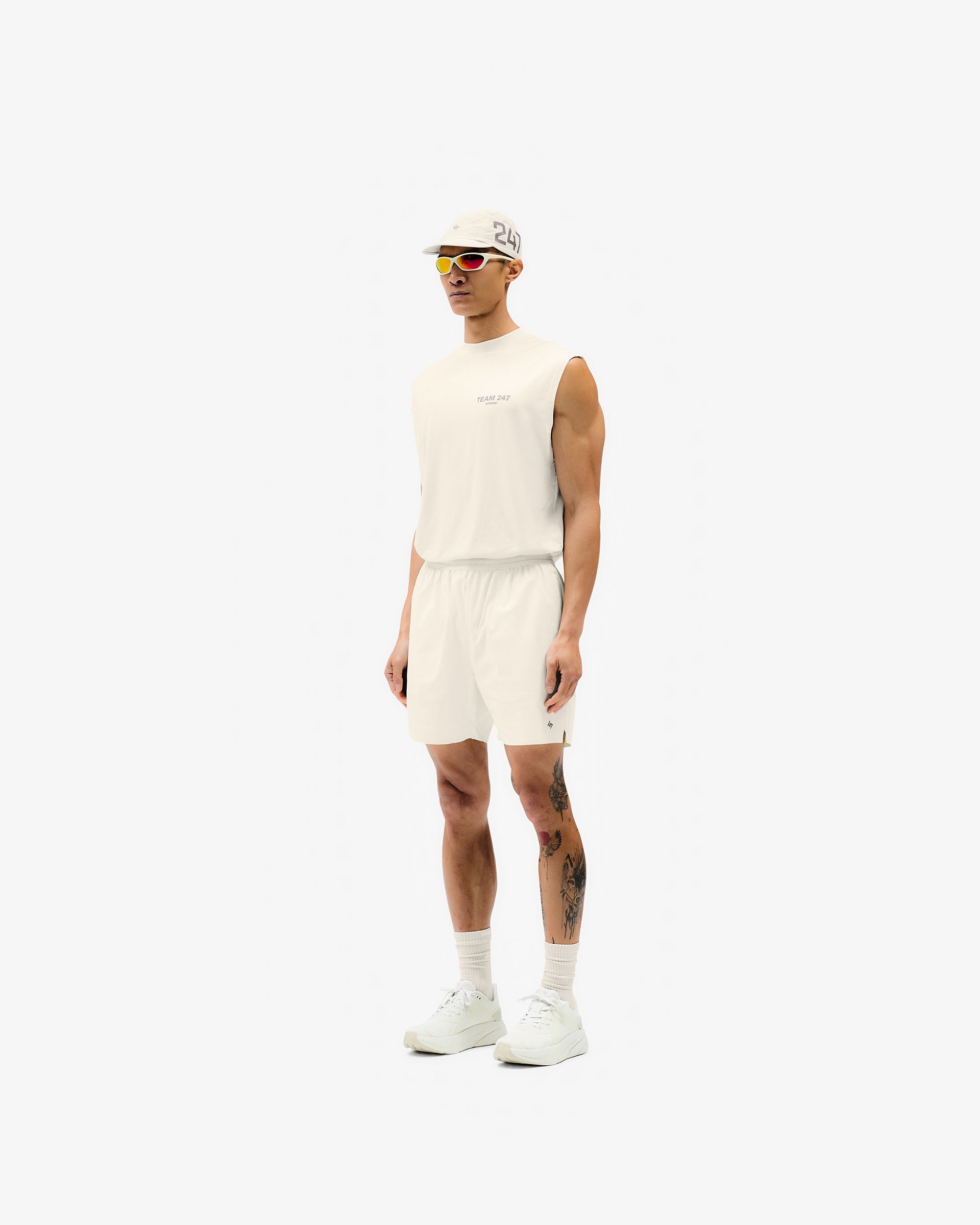 The only training shorts you’ll ever need, the Team 247 Fused Shorts in Cream are crafted from a recycled nylon and elastane blend, which is both sustainable and ultra durable to withstand the toughest of workouts. The fabric also features 4 way stretch for complete freedom of movement. These shorts showcase reverse coil zippers to the welt pocket as well as a fused side entry pocket for convenient access. They are also quick drying to ensure a box-fresh feel with every wear, and are finished with 247 branding.