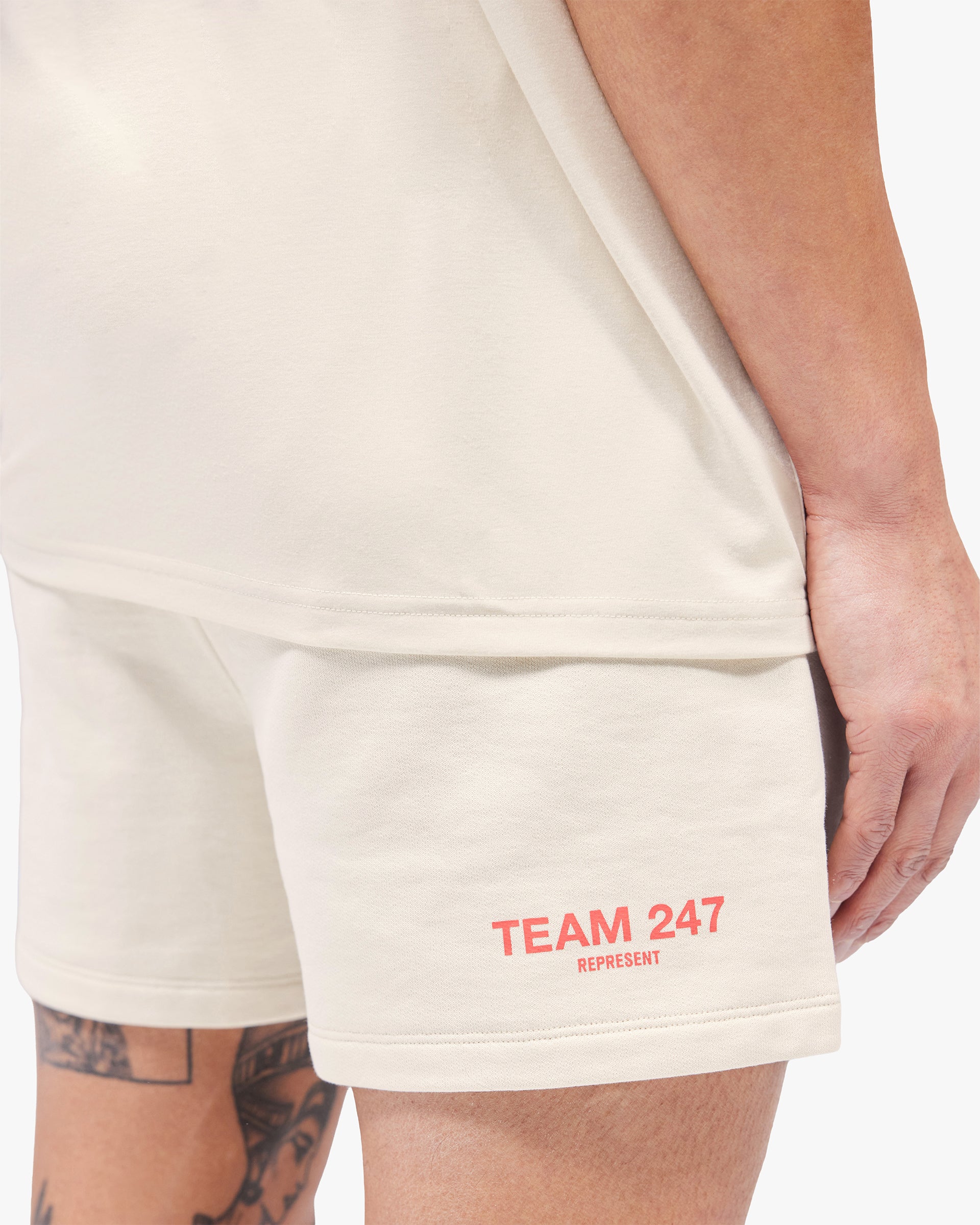 Introducing the Team 247 Jersey Short in Cream for SS26. A core comfort piece from the 247 DNA collection, these jersey shorts are designed for downtime, warm-ups and everyday movement. Constructed from a soft cotton blend jersey, they deliver a relaxed feel with natural stretch and breathability. An elasticated waistband provides a secure yet comfortable fit, whilst the clean silhouette is finished with Team 247 branding to the leg.