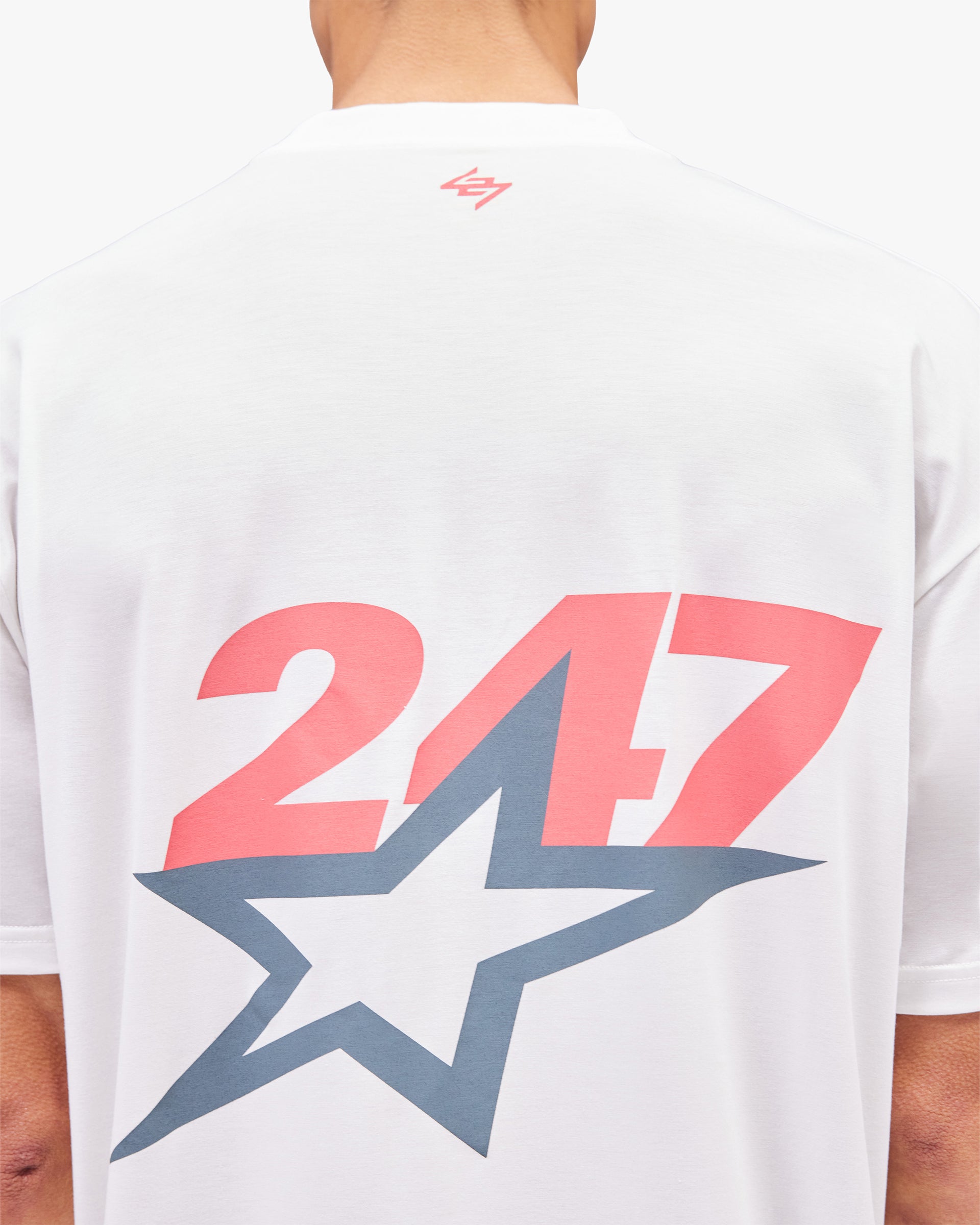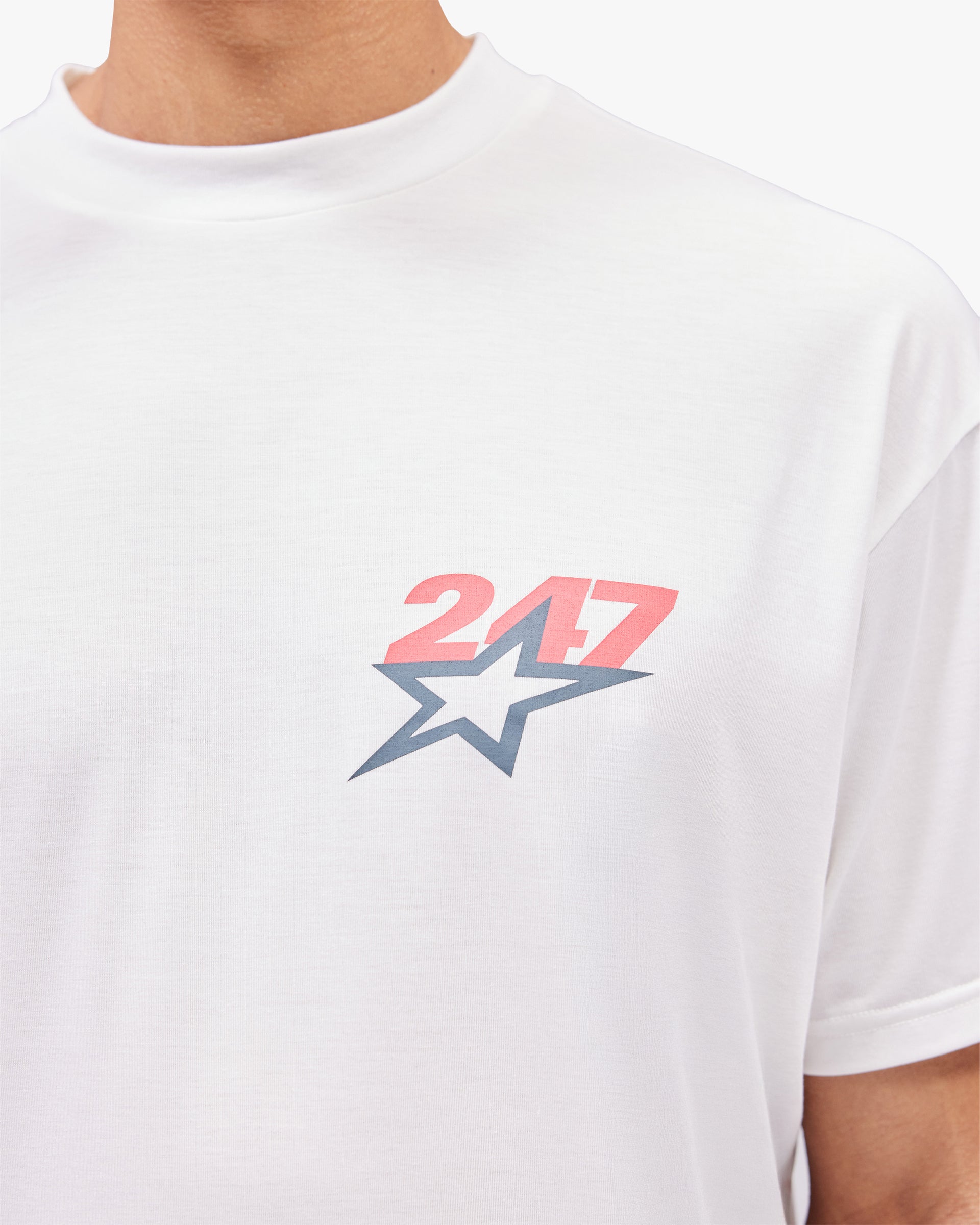 Introducing the Team 247 Star Oversized T-Shirt in Flat White. Crafted from Dri-Release fabric with anti-bacterial and wicking finishes, this oversized silhouette delivers complete freedom of movement throughout any session. A bold star graphic carries the energy of SS26, referencing the optimism of 1980s track and field. Finished with Team 247 branding to the chest and back.