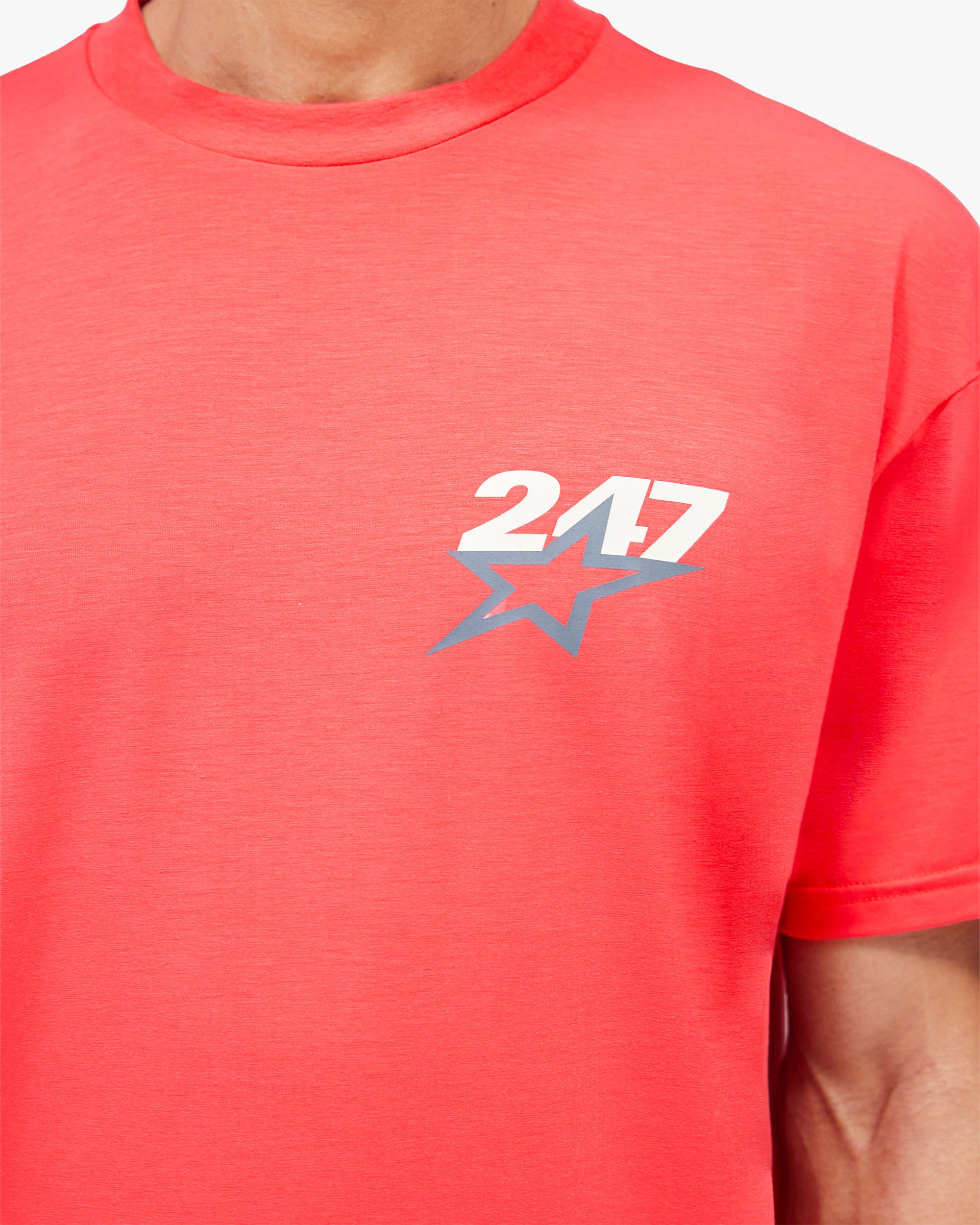 Introducing the Team 247 Star Oversized T-Shirt in Racing Red. Crafted from Dri-Release fabric with anti-bacterial and wicking finishes, this oversized silhouette delivers complete freedom of movement throughout any session. A bold star graphic carries the energy of SS26, referencing the optimism of 1980s track and field. Finished with Team 247 branding to the chest and back.